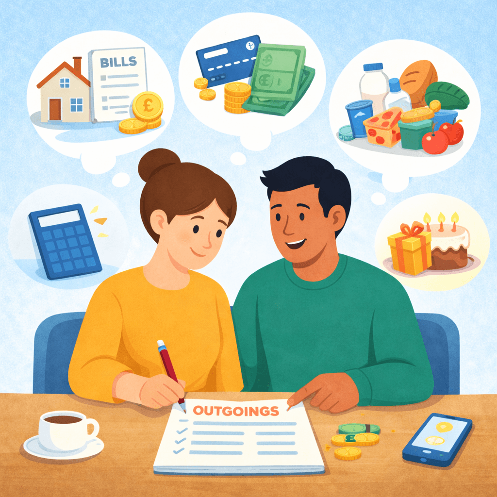 Write down everything you spend money on in a month . It helps to break expenses into categories: • Essential living costs (Needs): rent or mortgage, utility bills (gas, electricity, water), Council Tax, groceries, transport to work or school, insurance, child care costs . These are expenses you must pay to keep a roof over your head, stay safe and get to work. • Financial commitments: loan repayments, credit card minimum payments, phone bills, TV/internet subscriptions – any regular bills or debt payments . • Everyday living (Wants): discretionary spending like entertainment, dining out, gym memberships, hobbies, or takeaways. Also include occasional treats for yourself or the kids. These are optional expenses you can trim if needed . • Irregular and annual costs: those expenses that don’t occur every month. Think of birthdays, Christmas gifts, holidays, car maintenance or MOT, school uniforms, and other one-offs . Add up what you expect to spend in a year on these and divide by 12 to put a monthly amount in your budget . This way, you’ll set aside a bit each month toward those costs instead of scrambling when they arrive. Pro Tip: Prioritize “must-pay” expenses (priority bills) first. In the UK, certain bills have serious consequences if not paid. Priority debts include rent or mortgage, energy bills, Council Tax, and court fines – if these aren’t paid, you could lose your home, have your power cut off, or even face legal action . Make sure your budget covers these critical expenses before anything else. Less urgent bills (like credit cards or streaming services) should be dealt with after the essentials . A handy tool is MoneyHelper’s Bill Prioritiser, which can show you which payments to tackle first . • Visual idea: Consider a pie chart showing expenses by category (housing, bills, food, etc.). This can illustrate where most of the money is going. Another idea is an image of stacked jars or envelopes labeled for rent, bills, food, etc., highlighting the “jam jar” budgeting method (explained below).