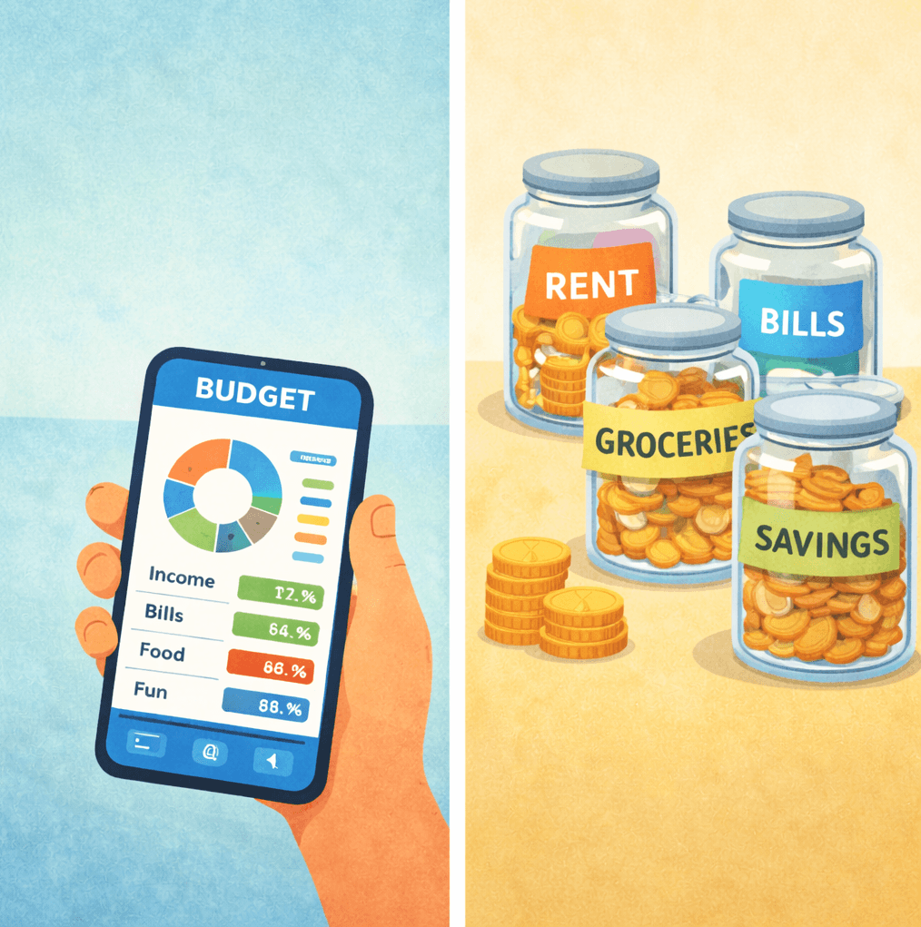 It doesn’t matter whether you use a fancy app, a spreadsheet, or pen-and-paper – use whatever method you find easiest to track your budget . Many people start with simple tools and gradually refine them. Here are a few approaches: • Traditional Spreadsheet or Notebook: Write down your income and all expenses in a notebook or use a spreadsheet template. This low-tech method works well and can be easily updated. (You can embed a snapshot of a basic budget table or use an illustration of a notebook with budget items.) • Budget Planner Tools: Try free online tools like the MoneyHelper Budget Planner , which adds up your income and outgoings and shows you what’s left. These tools often give personalized tips on where to cut back once you input your details . There are also smartphone apps that sync with your bank to track spending automatically (just ensure any app you use is reputable and secure). • Envelope or “Jam Jar” Method: This is a visual way to manage money – perfect if you prefer something tangible. Divide your cash into separate pots or envelopes for each spending category . For example, you might have an envelope for groceries, one for travel, one for leisure. When each envelope (or jam jar) is empty, you’ve hit the limit for that category. Digital version: Some bank accounts let you create multiple sub-accounts or savings pots to partition your money for bills, savings, etc. . This method, often called piggybanking, helps prevent accidentally spending the rent money on nights out – you always know the essentials are covered .